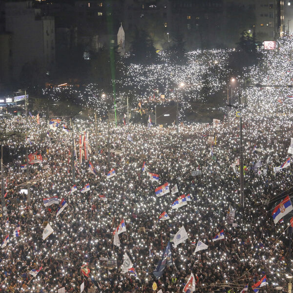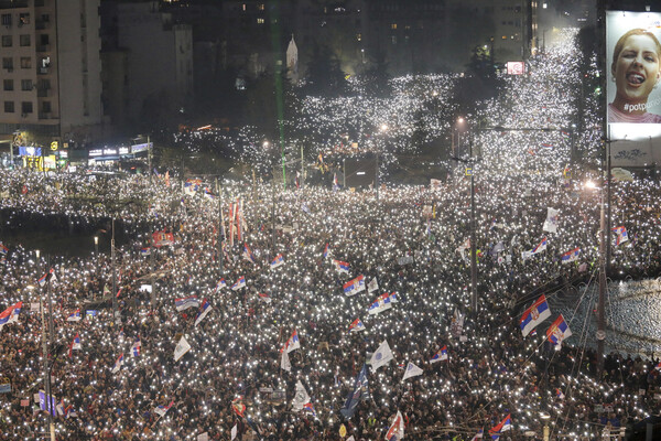 В оппозиции рассказали, что 15 марта мирные протестующие в сербской столице «подверглись обстрелу из ракетной установки дальнего действия».