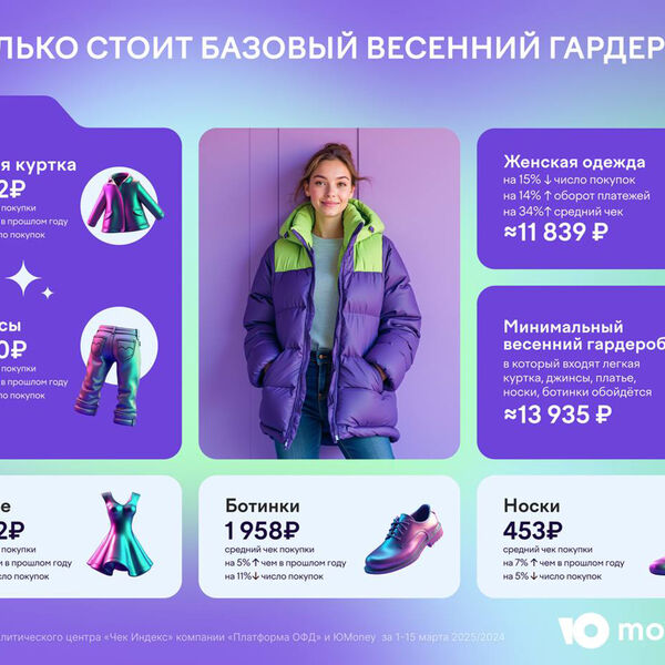 Аналитики кошелька ЮMoney и аналитического центра «Чек Индекс» компании «Платформа ОФД» изучили тренды продаж одежды и выяснили, сколько стоит собрать базовый весенний гардероб. Эксперты проанализировали онлайн- и офлайн-платежи в категории одежды и аксессуаров с 1 по 15 марта 2025 года и сравнили полученные данные с прошлогодними.