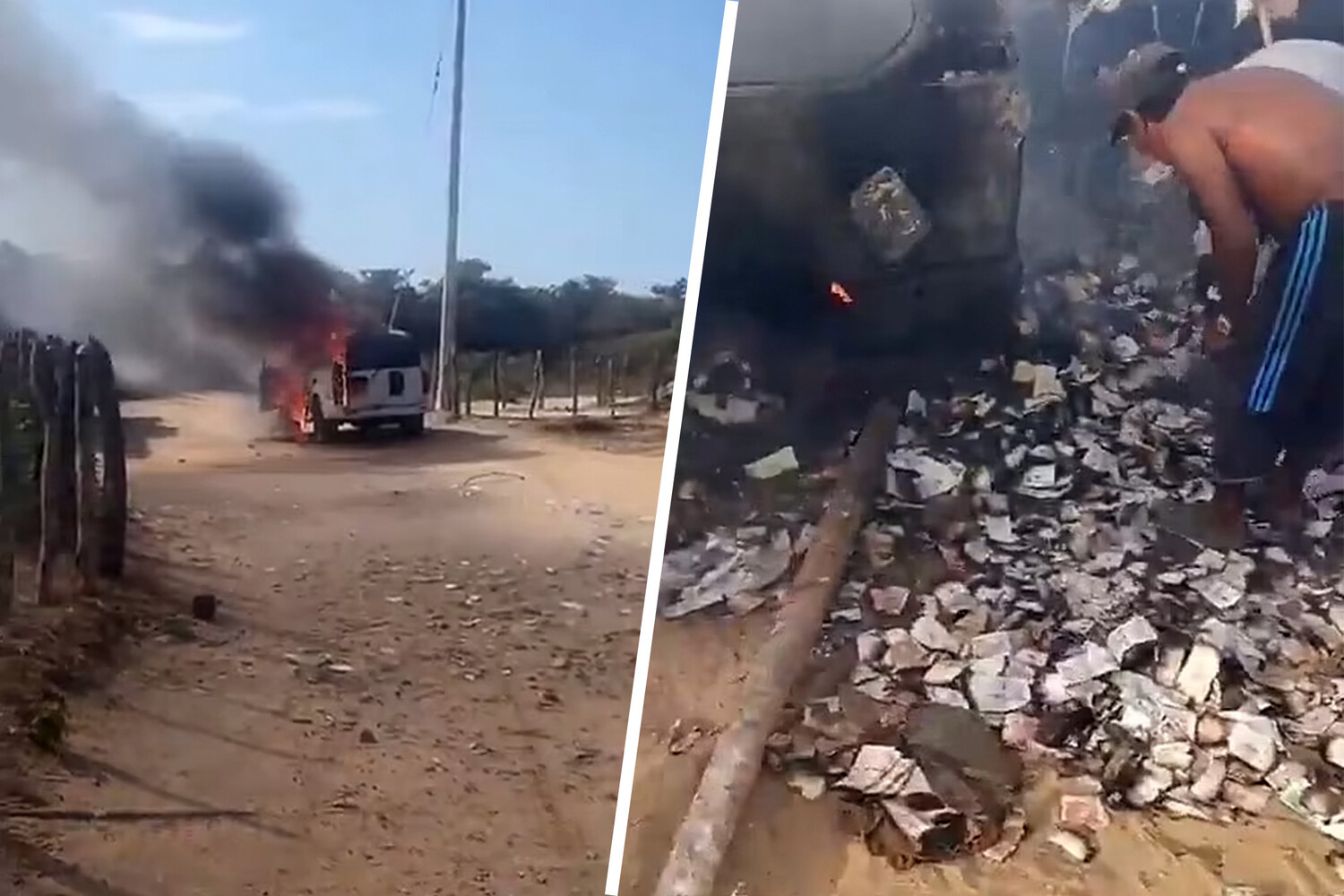 После этого в соцсетях начали распространяться кадры, как местные жители собирают уцелевшие банкноты из-под обгоревших остатков автомобиля. Властям пока удалось найти только четыре из похищенных сумок с деньгами и задержать двух подозреваемых. Точная сумма украденного не называется, но, по данным местных СМИ, речь может идти о миллионах долларов.