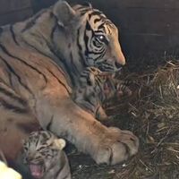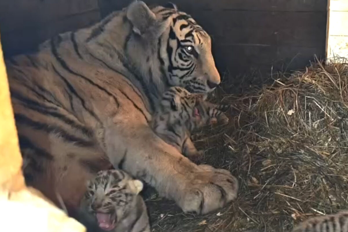 Согласно публикации, пополнение в семье тигров Фифы и Маяка произошло 29 марта. Детеныши весят около не более 1,6 кг, а их длина составляет около 30 см. В первые недели тигрята совершенно беспомощны и зависят от матери. Их глаза закрыты, они ориентируются на голос и запах Фифы. Зрение появится примерно через две недели.