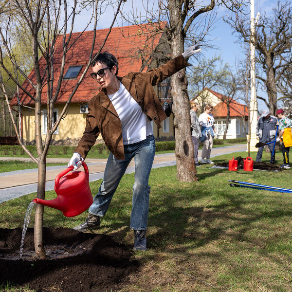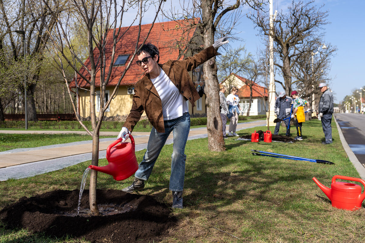 Участники субботника в рамках мероприятия убирали с газонов листву, приводили в порядок скульптуры, а также сажали деревья и кустарники.