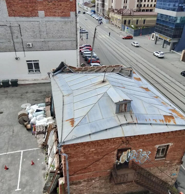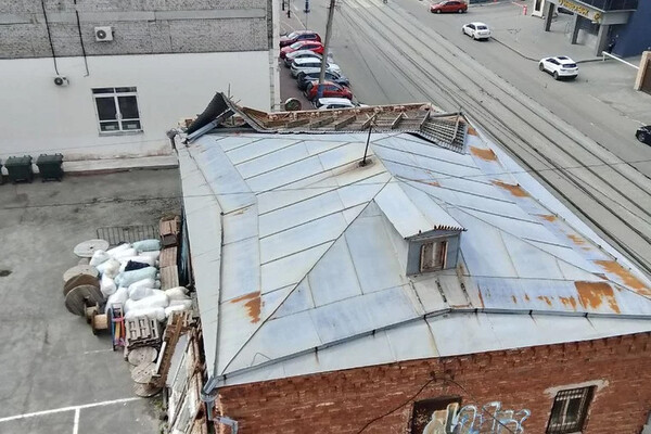 Сильный ветер сорвал часть крышу с памятника архитектуры в центре Челябинска. Об этом сообщает Ura.ru.