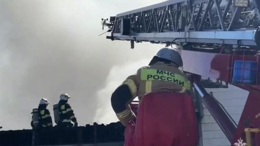 По данным ведомства, внутри горящего здания работают 10 звеньев газодымозащитной службы. Также к тушению привлекли вертолет, который уже сбросил порядка 10 тонн воды.