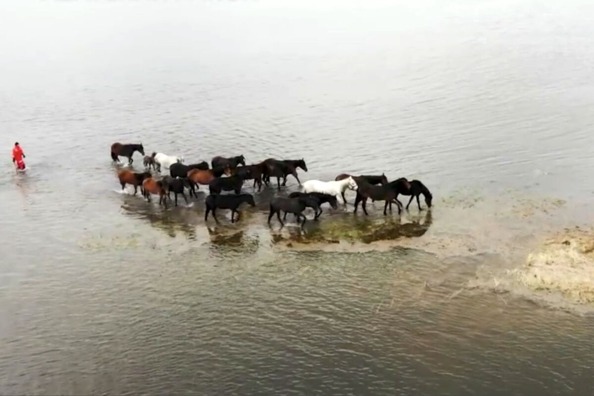 «41 овцу перевезли с одного берега на другой на лодке. 20 лошадей и одного жеребенка доставить на большую землю возможности не было, так что их перегнали по воде на сухое безопасное место», — написал Моор.