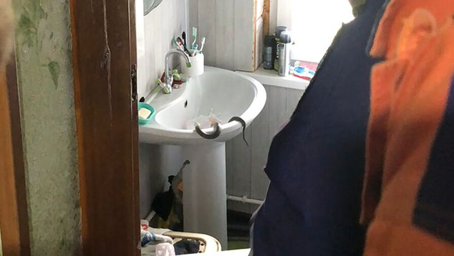 Проживающий в Тихорецке мужчина рассказал, что хотел зайти в туалет, но обнаружил, что в уборной появилась змея. Рептилия забралась в раковину и устроилась там кольцами. Хозяин дома заметил змею из-за торчавшего из раковины хвоста и дальше пройти не решился.