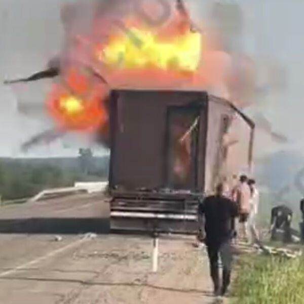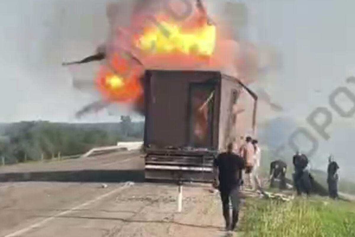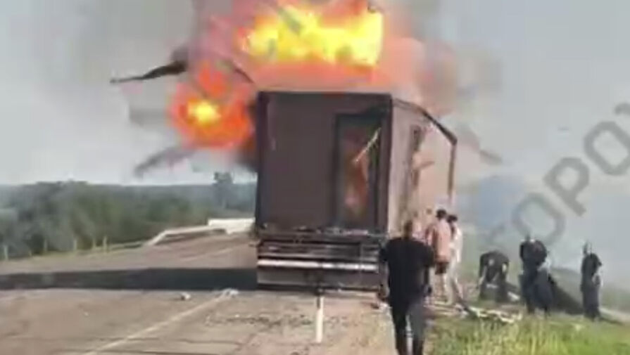 На ролике можно увидеть дым, исходящий от фуры. Затем раздался взрыв.