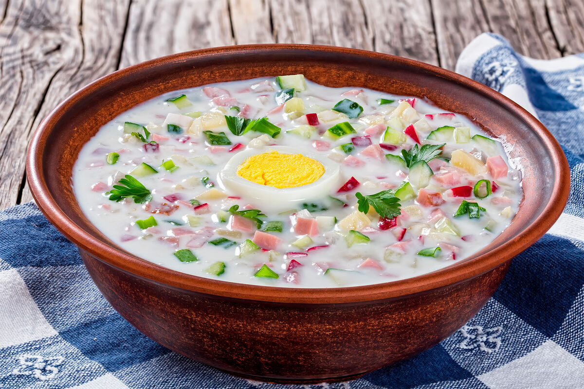 В мае аналитики Х5 Digital подсчитали, что в 2025 году на приготовление пяти порций окрошки в 2025 году уйдет от 240 до 400 рублей. Отмечается, что в состав окрошки входят картофель, вареная колбаса, яйца, редис, огурцы, зелень (укроп, петрушка, зеленый лук). Если заправить окрошку квасом, затраты увеличатся до 330-500 рублей, а если кефиром — до 315-480 рублей.