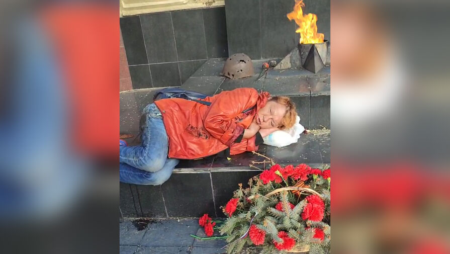 Инцидент произошел в городе Люберцы. Женщина легла спать на мемориале возле Вечного огня. На кадрах с места видно, как нарушительница в грязной одежде спит рядом с цветами, положив голову на пакет. Мужчина, ставший очевидцем случившегося, разбудил ее и попросил уйти.