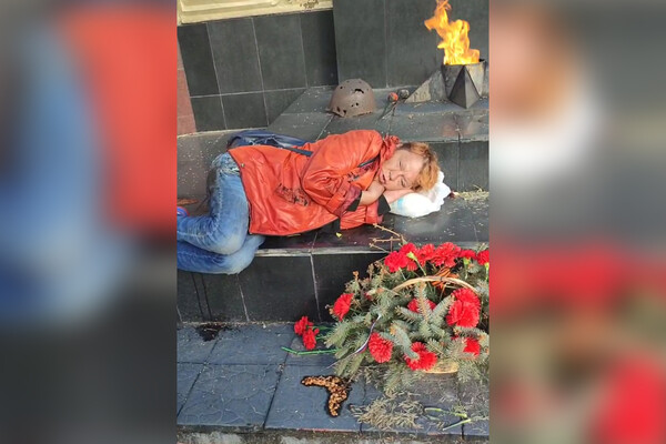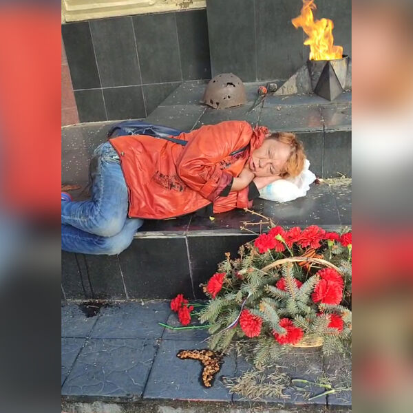 Инцидент произошел в городе Люберцы. Женщина легла спать на мемориале возле Вечного огня. На кадрах с места видно, как нарушительница в грязной одежде спит рядом с цветами, положив голову на пакет. Мужчина, ставший очевидцем случившегося, разбудил ее и попросил уйти.
