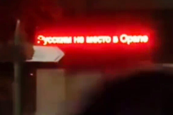 На западе Казахстана в городе Уральске хозяева магазина зажгли над входом светодиодную надпись «Русским не место в Орале (так Уральск называют на казахском)». Видео опубликовал Telegram-канал «Русские Новости».
