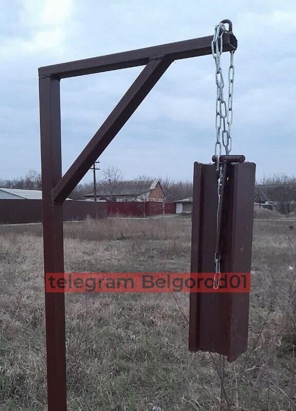 В хуторе Красиво Борисовского района Белгородской области не работает сирена, однако местные жители придумали устройство для оповещения соседей, повесив на цепь кусок металла, похожий на фрагмент рельсы. Об этом сообщает Telegram-канал «Белгород №1».