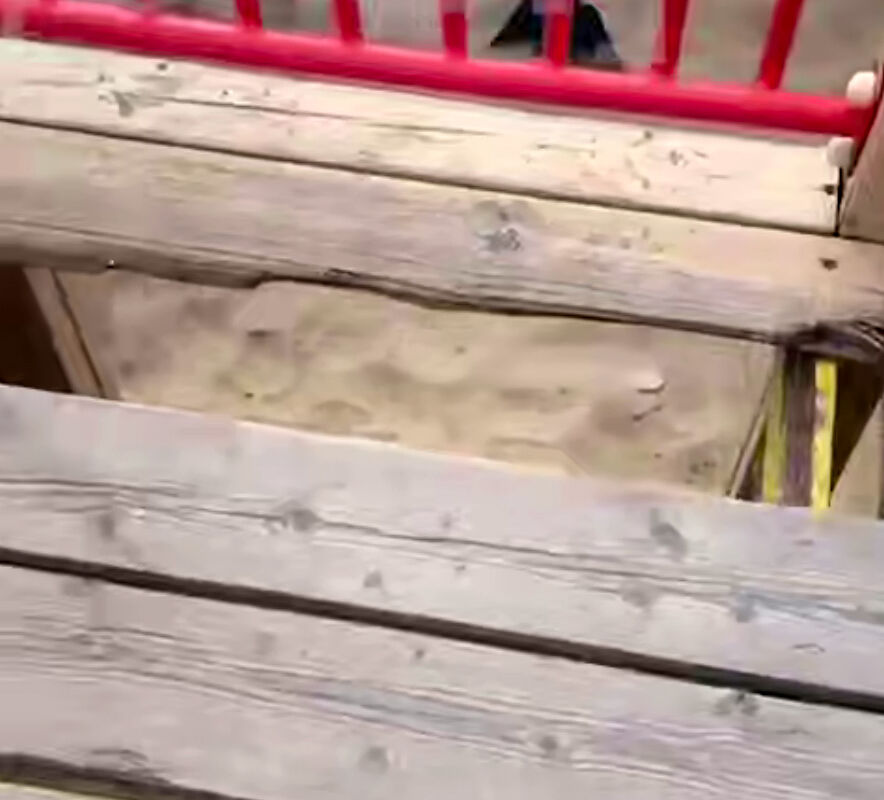 Инцидент произошел в Ахтубинске и попал на видео — кадры сделал родственник, который играл с девочкой на площадке и решил снять это на смартфон. На них девочка бежит по деревянному настилу конструкции в сторону горки, когда внезапно проваливается между досками и кричит. Позже мать пострадавшей забралась на игровую конструкцию, чтобы снять на видео отсутствующую доску и дыру, в которую провалилась ее дочь.
