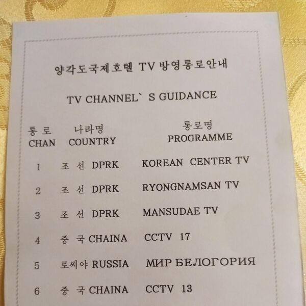 До этого Telegram-канал TeleSat-INFO поделился фотографией российского туриста из северокорейской гостиницы. В списке телеканалов для иностранцев, которые можно посмотреть, есть только два российских — «Мир Белогорья» и телеканал «V». В посте отмечается, что под буквой «V» может скрываться телеканал «Ю».