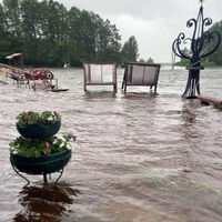 Местные жители делятся в соцсетях кадрами летающих мусорных баков и поваленных деревьев. Наиболее сложная ситуация в Сестрорецке — там затопило парк Дубки.