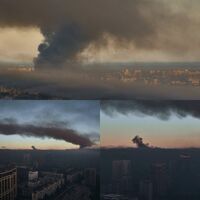 «Украинские железные дороги» сообщили о повреждении железнодорожной инфраструктуры столицы республики. Местные новостные порталы сообщают о резком ухудшении качества воздуха на юге Киева до уровня в 16 раз выше нормы.