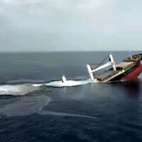 На кадрах виден взрыв, который произошел на палубе судна. Также в ролике показан последующий постепенный уход сухогруза под воду.