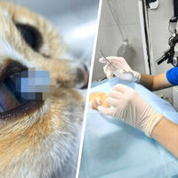 До этого сотрудники московской Советской ветеринарной клиники спасли кошку по кличке Фрося, которая случайно попалась на рыболовный крючок. Она решила поиграть с удочками и снастями, пока ее хозяин собирался на рыбалку, и проколола губу крючком.