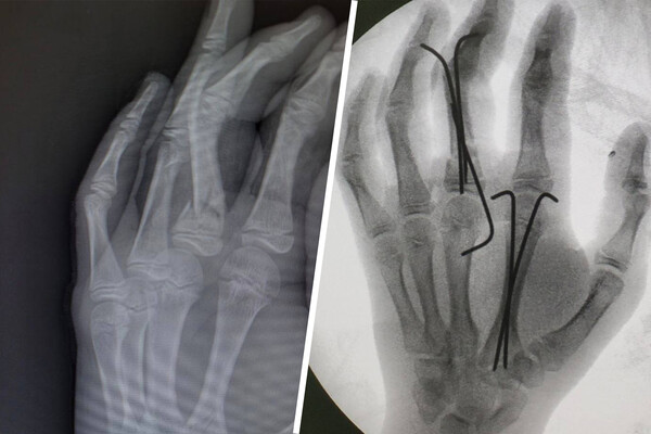 Юноша попал Московский областной центр охраны материнства и детства (МОЦОМД) с тяжелой травмой левой кисти после неудачного прыжка с тарзанки. У мальчика диагностировали открытый оскольчатый перелом среднего и указательного пальцев, а также большую рваную рану.