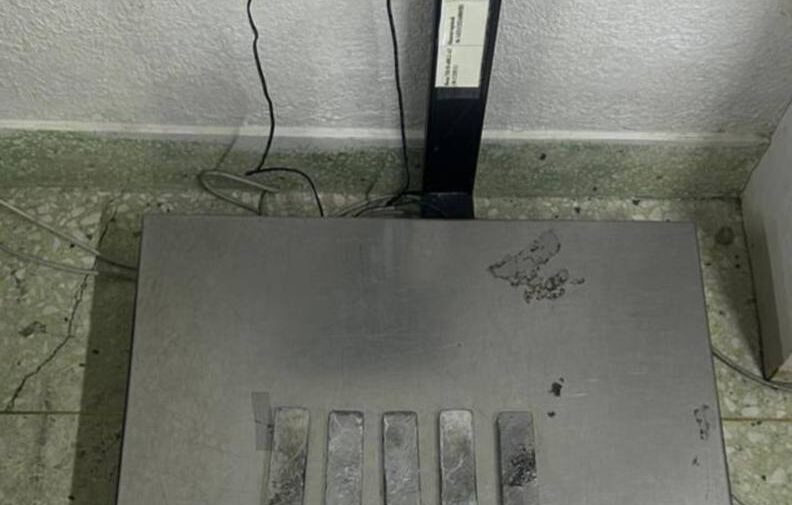 По данным ведомства, во время досмотра рейсового автобуса сотрудники обнаружили в заднем левом отсеке ящик с инструментами, в двойном дне которого находились 11 металлических слитков серого цвета общим весом 9,3 кг.