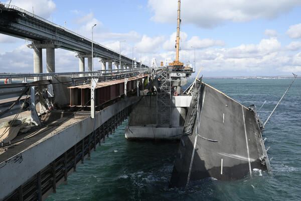 Утром 8 октября 2022 года на автомобильной части Крымского моста со стороны Таманского полуострова взорвался грузовой автомобиль. Подрыв, согласно выводам взрывотехников, был произведен дистанционно. Взрыв спровоцировал возгорание семи топливных цистерн железнодорожного состава, следовавшего в направлении Крымского полуострова. В результате частично обрушились два автомобильных пролета.
