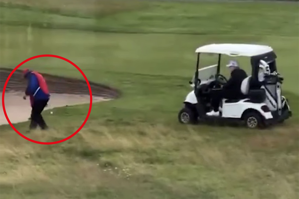 Судя по ролику, персонал полей Трампа для гольфа подыгрывал ему на матчах в Шотландии. На распространяемых в сети кадрах видно, как кедди (помощник игрока) обогнал гольф-кар Трампа и подкинул мяч в его сторону.