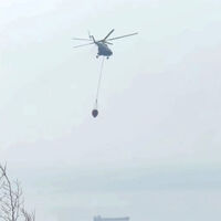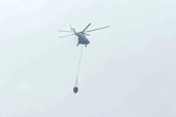 На опубликованных кадрах можно заметить, что на место распространения огня прибыл вертолет Ми-8 МЧС России.