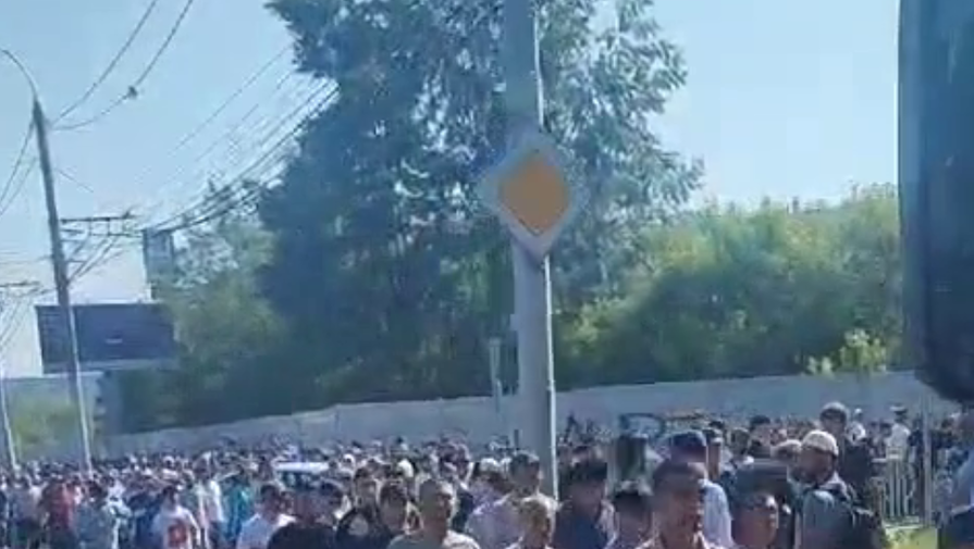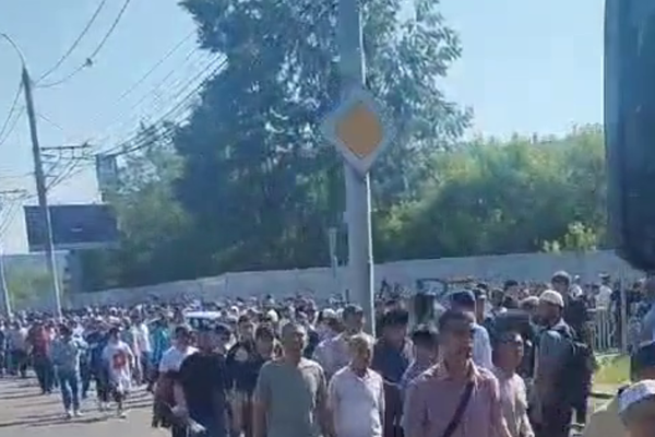Жительница Красноярска сняла на видео многотысячное шествие мигрантов. Запись опубликовал Telegram-канал «Русские Новости».