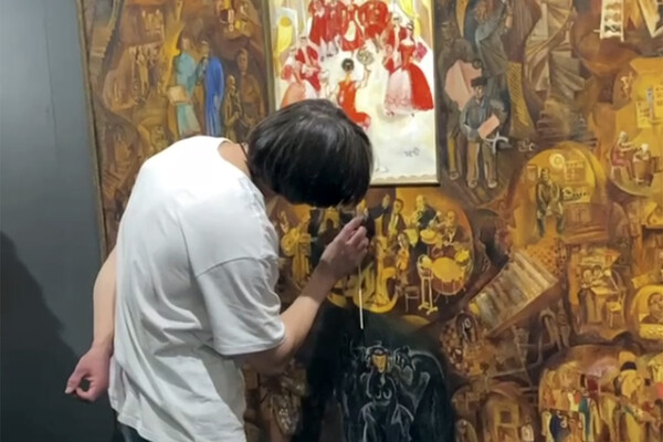 Инцидент произошел на экспозиции советского искусства. Неизвестный дорисовал глаза героям картины Германа Метелева «Театр». Реставраторы музея провели работы по снятию посторонних чернил с картины.