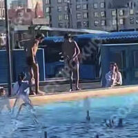 На опубликованном видео двое мальчиков в плавках и шапочках для плавания стоят на бортике фонтана, а затем спрыгивают в воду. Один из них делает это дважды. В посте отмечается, что вода в фонтане прогрелась до +17°C.