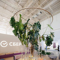 Объект превращает идею умной экосистемы в зримую форму: легкие вертикальные колонны создают эффект невидимой опоры, по прозрачным каналам бегут пузырьки-данные. В окружающую среду встроена умная колонка SberBoom Micro, с которой можно побеседовать о философии, природе и будущем. И даже дизайн драпировок сгенерирован с помощью нейросети Kandinsky.