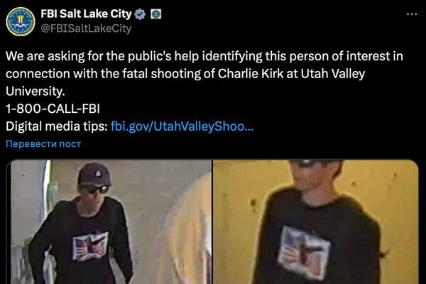 «Мы просим общественность оказать содействие в установлении личности человека, подозреваемого в причастности к убийству Чарли Кирка в Университете долины Юты», — говорится в сообщении.