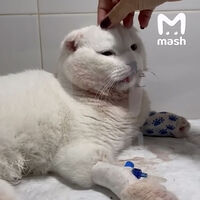 В результате падения семимесячный скоттиш-фолд по кличке Тайсон получил переломы, черепно-мозговую травму и контузи/ внутренних органов. Очевидцы заметили раненого кота и отвезли его в ветеринарную клинику.