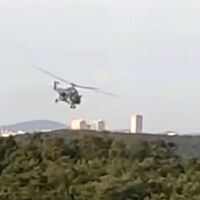 Публикация дополнена кадрами, на которых видно, как воздушное судно пролетает над жилыми домами.