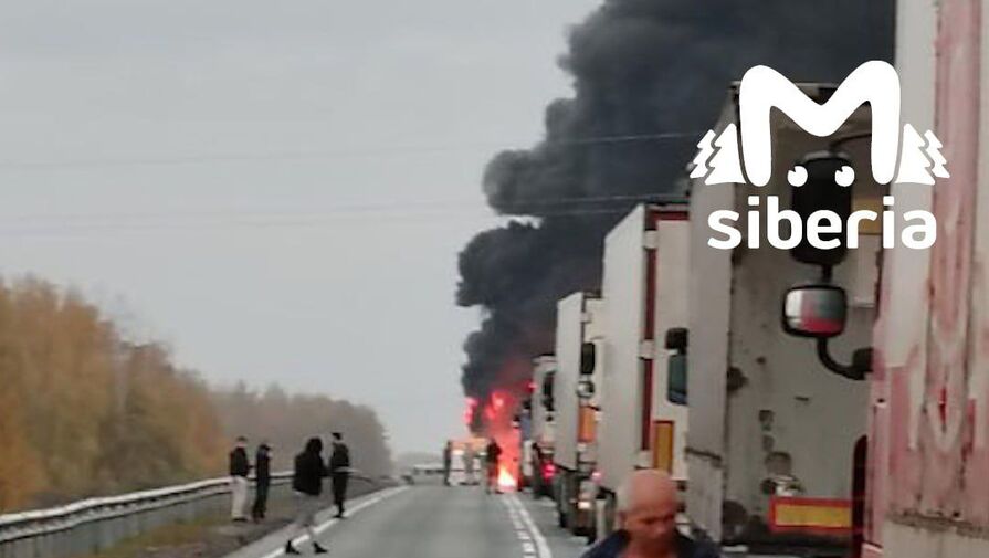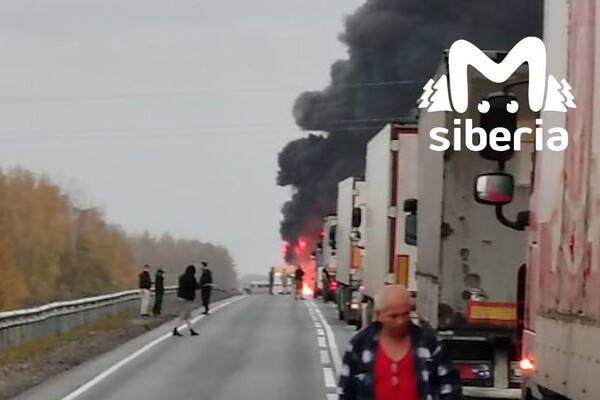 Водители и пассажиры, оказавшиеся в заторе под Барабинском, слышали несколько взрывов, после чего одна из фур загорелась.