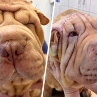Ветеринары в Москве спасли шарпея, который не видел из-за складок кожи