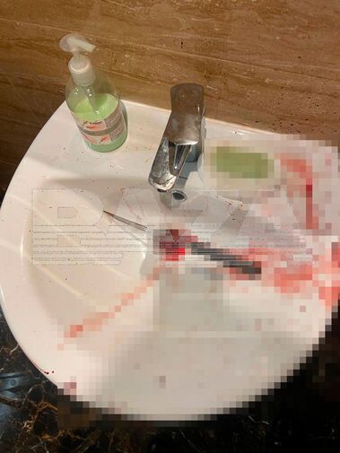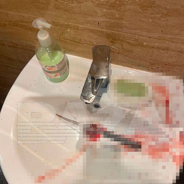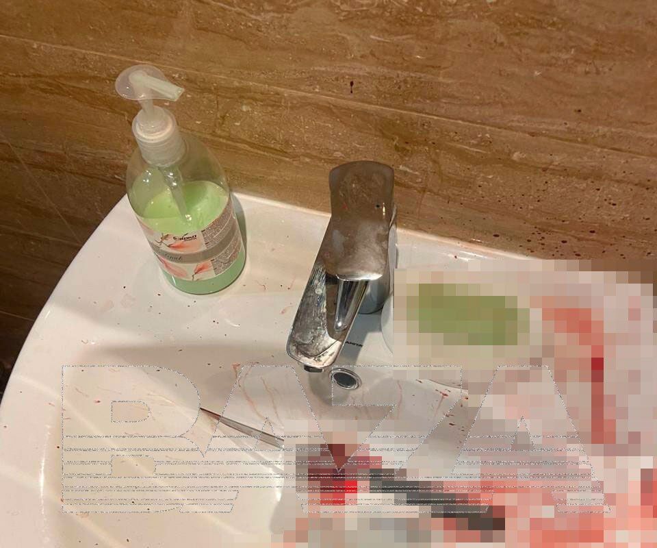 На кадрах виден окровавленный кухонный нож, лежащий в раковине.