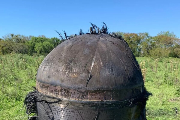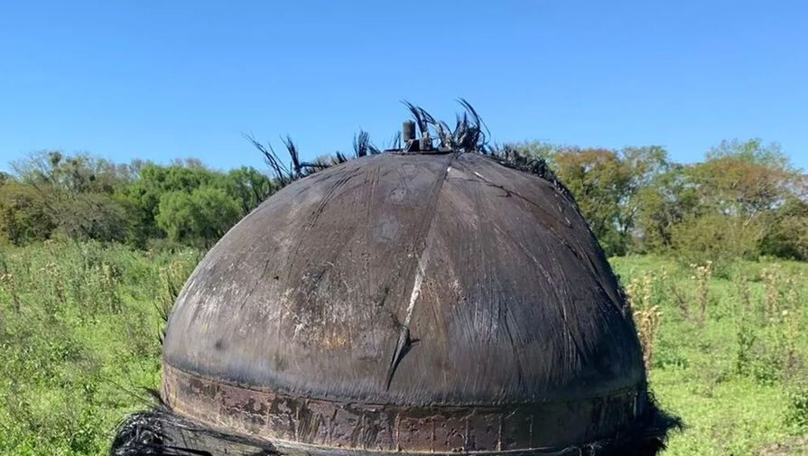Крупный цилиндрический объект, покрытый волокнистым материалом, упал на территорию частной фермы в аргентинском городе Пуэрто-Тироль. Об этом сообщает издание Mirror.