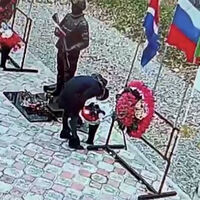 На кадрах с места инцидента заметно, как женщина пытается поджечь стоящие в вазе цветы. После этого она взяла несколько предметов около основания памятника и разбила их. Затем пинала элементы мемориала и светильники по краям от дороги, ведущей к нему.