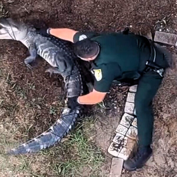 На записи с нагрудных камер правоохранителей и съемку, сделанную с дрона, попал момент, когда помощник шерифа округа поборол рептилию и связал ей лапы. После чего коллеги помогли ему зафиксировать пасть животного скотчем.