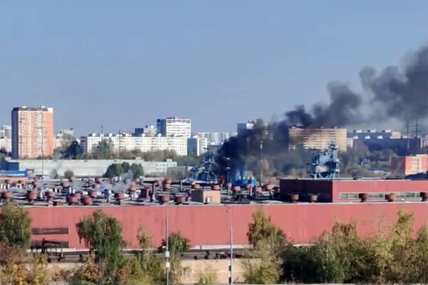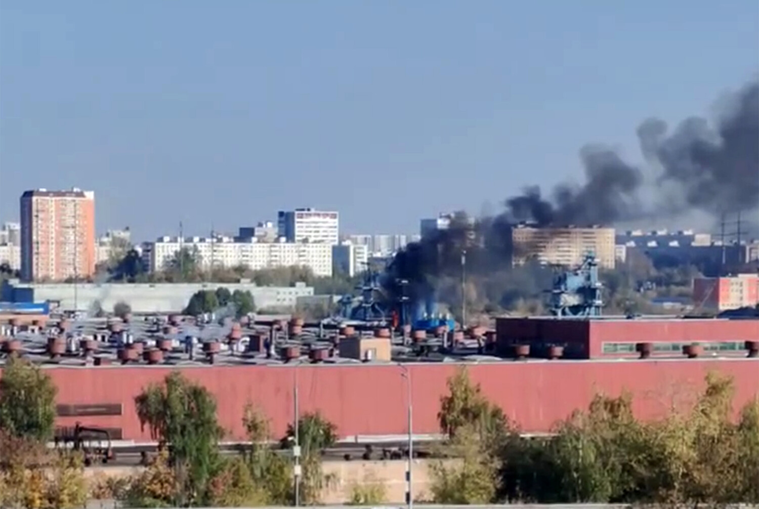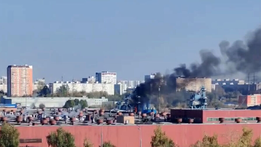 В публикации отмечается, что густой дым поднимается над промышленной зоной, расположенной рядом со станцией.