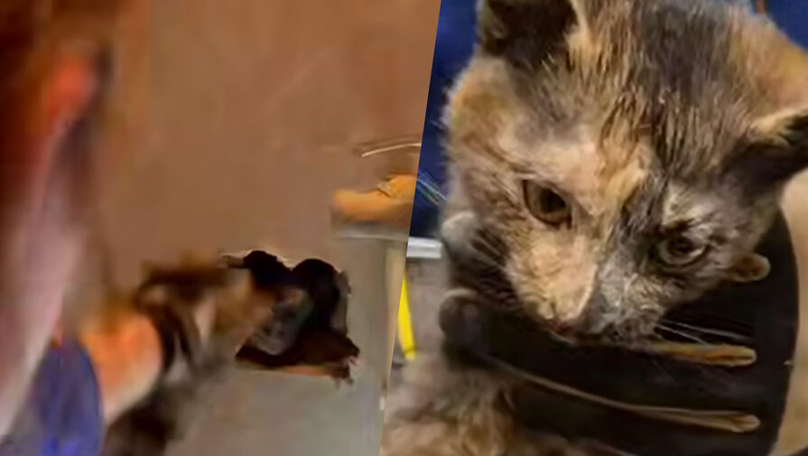 После долгих манипуляций животное удалось вызволить из стены. Кошку напоили водой, покормили и показали ветеринарам. Сейчас с животным все хорошо, ему ищут хозяина.