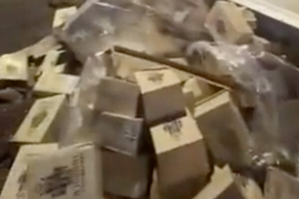 По данным журналистов, грузовик, загруженный коробками с грузинским вином, попал в жесткую аварию в Железноводске. Кузов транспортного средства разлетелся на части, десятки коробок с алкоголем вывалились на дорогу.