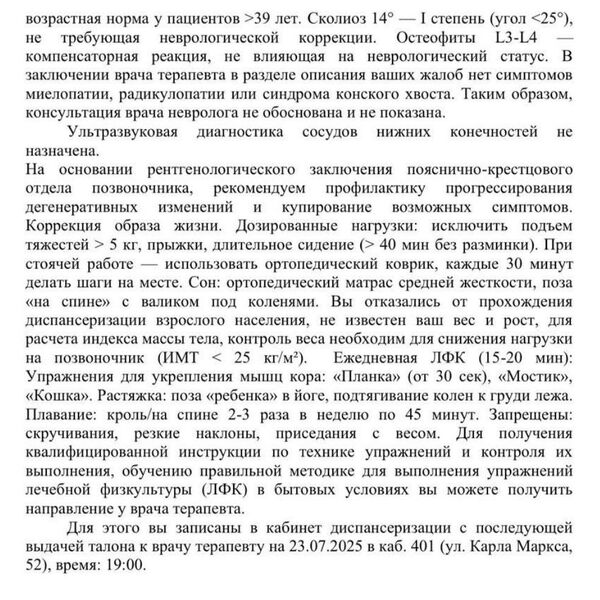 В региональном министерстве отметили, что у пациента нет показаний для консультации невролога. При этом заявителю посоветовали обратиться к терапевту, чтобы тот выдал ему направление на инструктаж по правильному выполнению упражнений лечебной физкультуры в домашних условиях.