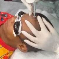 Сначала ребенку нанесли обезболивающий крем, а затем удалили рисунки лазером. Као спокойно переносил процедуру в защитных очках, несмотря на боль. Процесс занял около 15 минут.