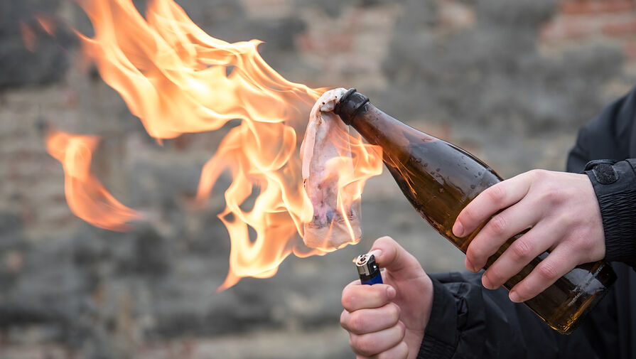 После этого они бросили бутылку с горючим в здание банка, в этот момент женщина постоянно общалась с кем-то по телефону. Пожара не произошло.