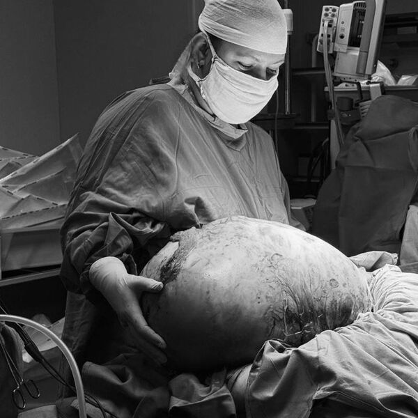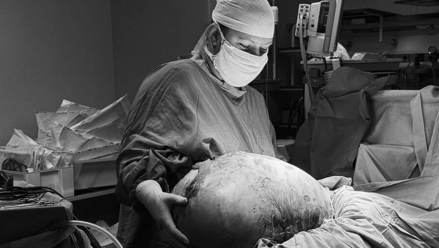 Женщина самостоятельно обратилась к врачам — ее беспокоили слабость и живот, который существенно увеличился в размерах. В ходе обследования у нее нашли гигантскую опухоль брюшной полости и малого таза. Размер образования в диаметре составлял около 50 сантиметров. Вес опухоли составил 20 килограммов.