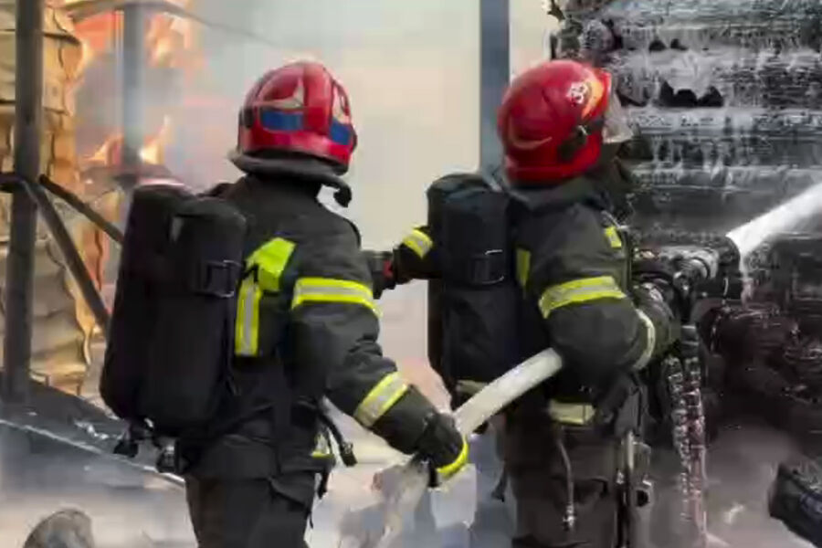 В заявлении говорится, что всего из загоревшегося здания эвакуировали 26 человек. Для обогрева эвакуированных людей использовался автобус.