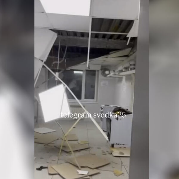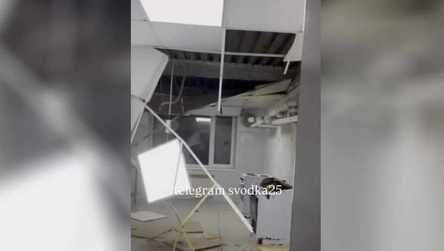 На кадрах с места заметно, что плиты с потолка и освещение рухнули на пол или остались подвешенными за провода. Техника также пострадала.