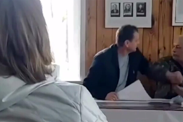 На видеозаписи собрания, попавшей в распоряжение журналистов, двое мужчин сидят за столом под плакатом с надписью «Они сражались за родину». Мужчины начинают ссориться. Далее мужчина, который одет в серый свитер и черную куртку, встает и наносит удары своему оппоненту в куртке расцветки хаки.