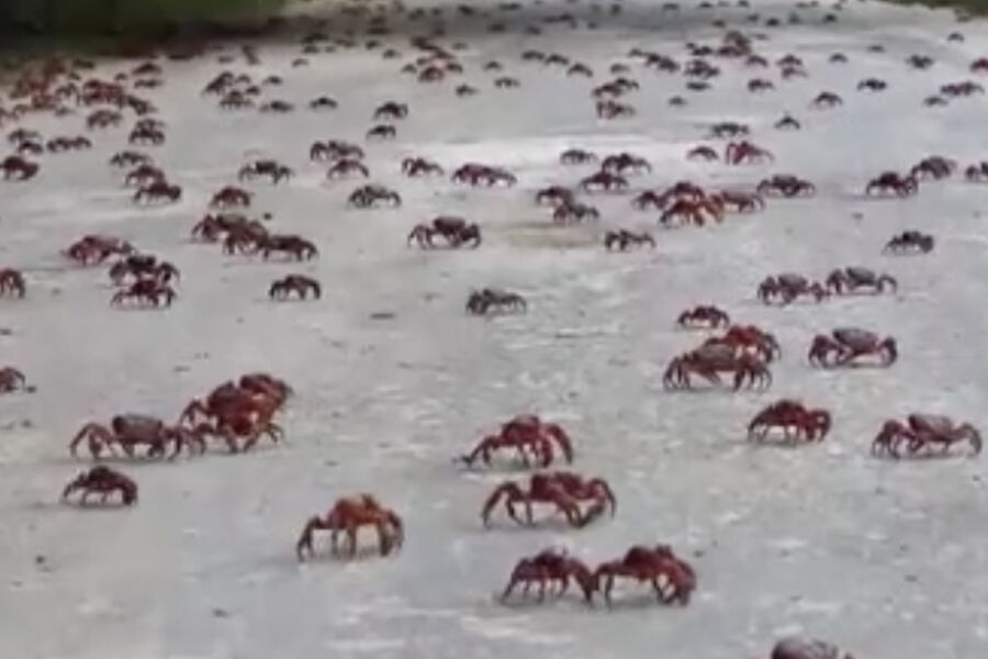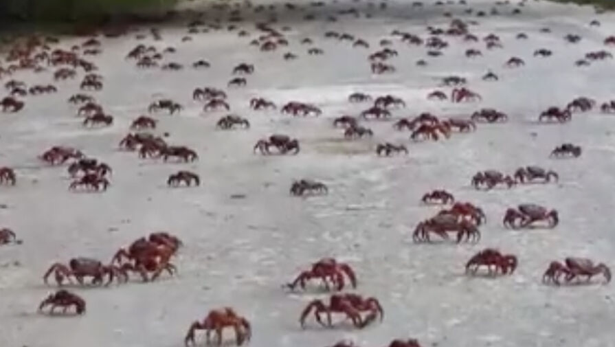 Миллионы крабов заполонили автодороги острова, чтобы добраться из леса до океана. Там самки и самцы будут спариваться, после чего отложат яйца. Из них появятся личинки, которые через месяц превратятся в молодых крабов и начнут мигрировать обратно в лес, сообщает телеканал.